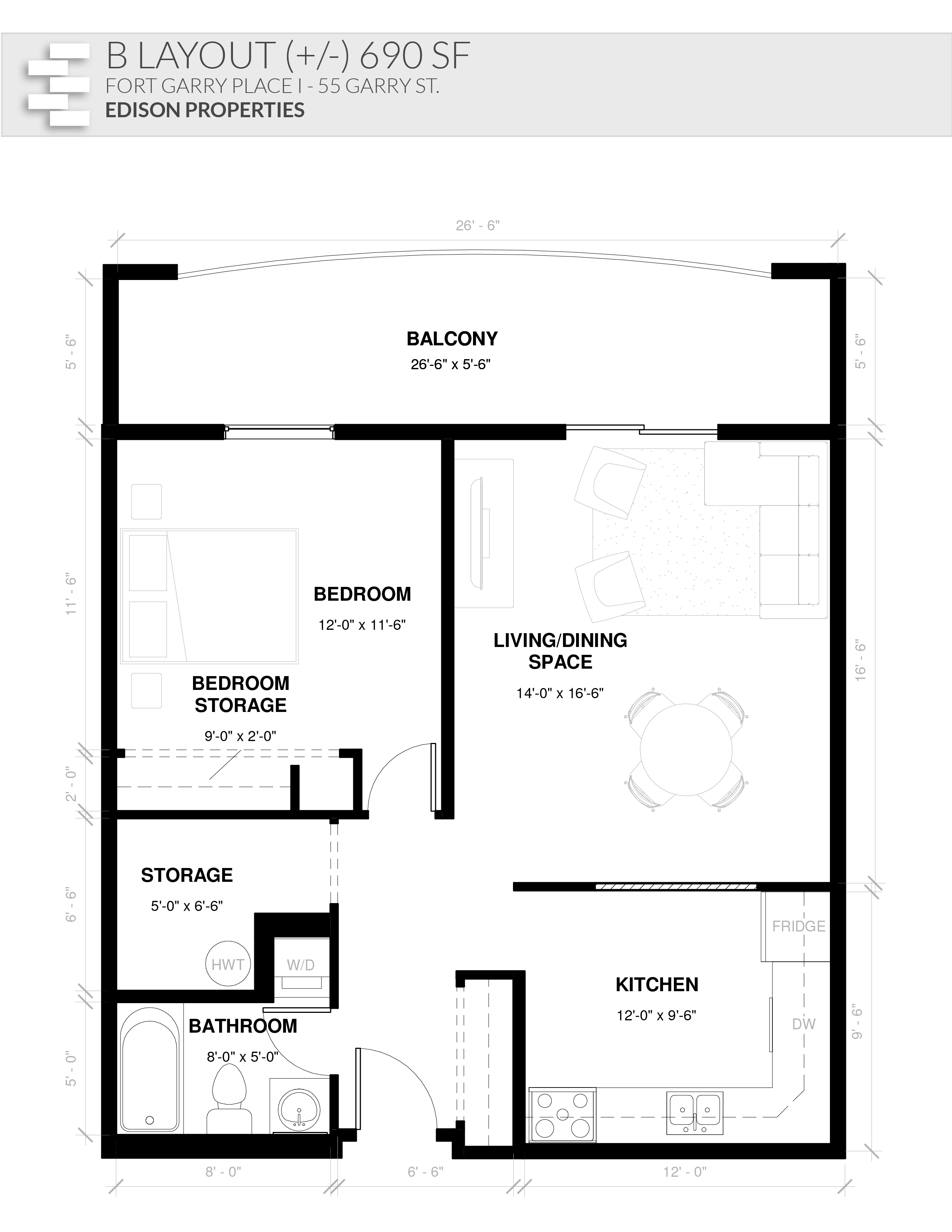 1 Bedroom 1 Bath (1Bed1Bath-B)