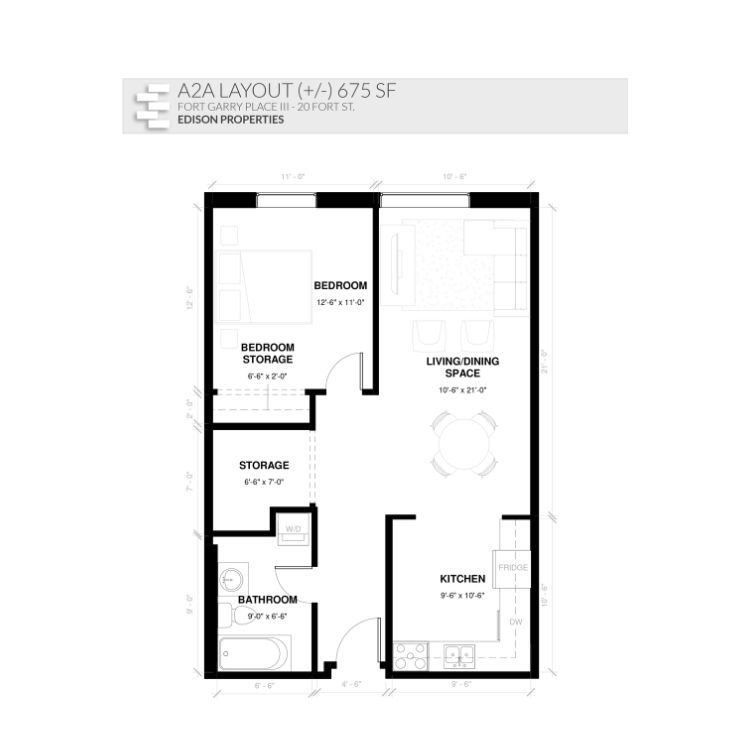 1 Bedroom 1 Bath (1Bed1Bath-B1A)