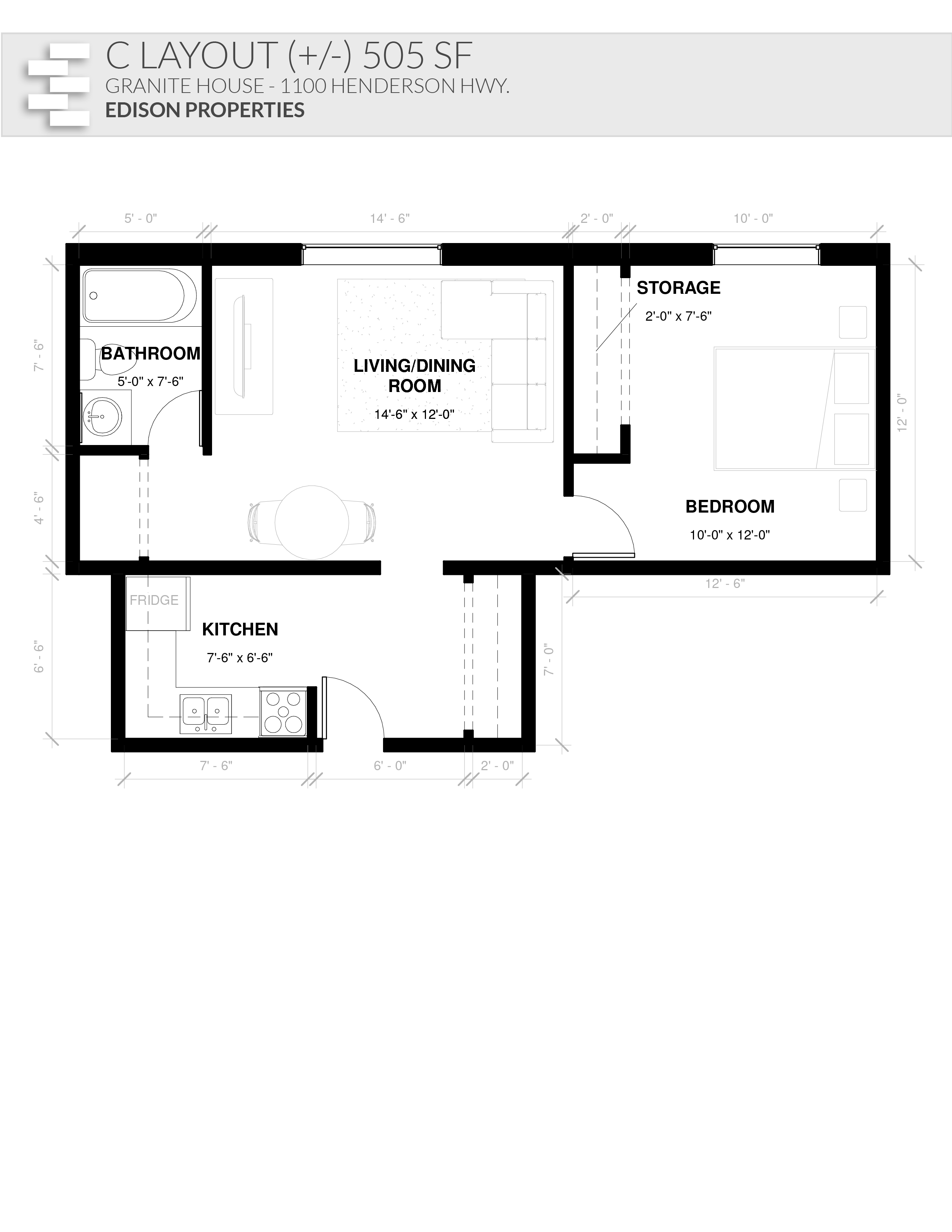 1 Bedroom 1 Bath (1Bed1Bath-D)